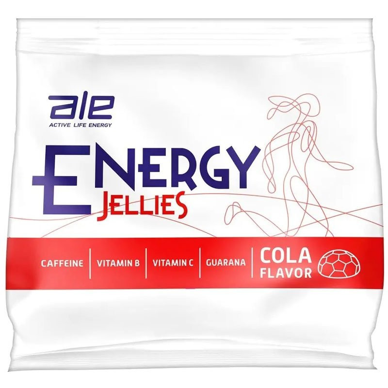 ALE Energy Jellies, żelki o smaku coli z kofeiną i guaraną – przekąska w formie żelek zawierająca kofeinę, guaranę oraz dodatek witamin. Produkt bezglutenowy.