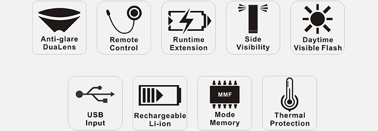 CR-700 LED to aluminiowa sterowana pilotem przednia lampa rowerowa o mocy 700 Lumenów, dobrze oświetlająca drogę do 100m i jednocześnie nie oślepia jadących z przeciwka. Wbudowany akumulator Li-ion ładowany poprzez USB. Można doładowywać w czasie użytkowania np. z e-bike.